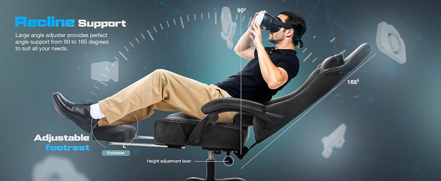 - Flexible Recline with Retractable Footrest: Enjoy customizable comfort with an adjustable backrest that reclines up to 135 degree and a retractable footrest for extended relaxation. Perfect for switching between gaming, reading, and resting, providing tailored comfort for any situation.