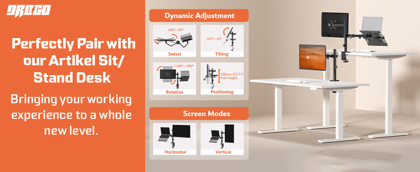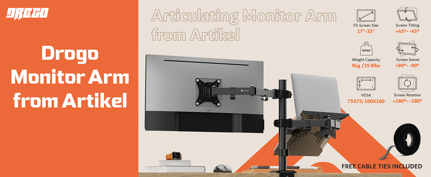 - Free Up Your Desk Space: Artikel Heavy duty monitor arm has an integral cable management feature, helping to hold wires. The Dual monitor table mount releases desk space while creating a more comfortable work environment. More desk space, better workflow.