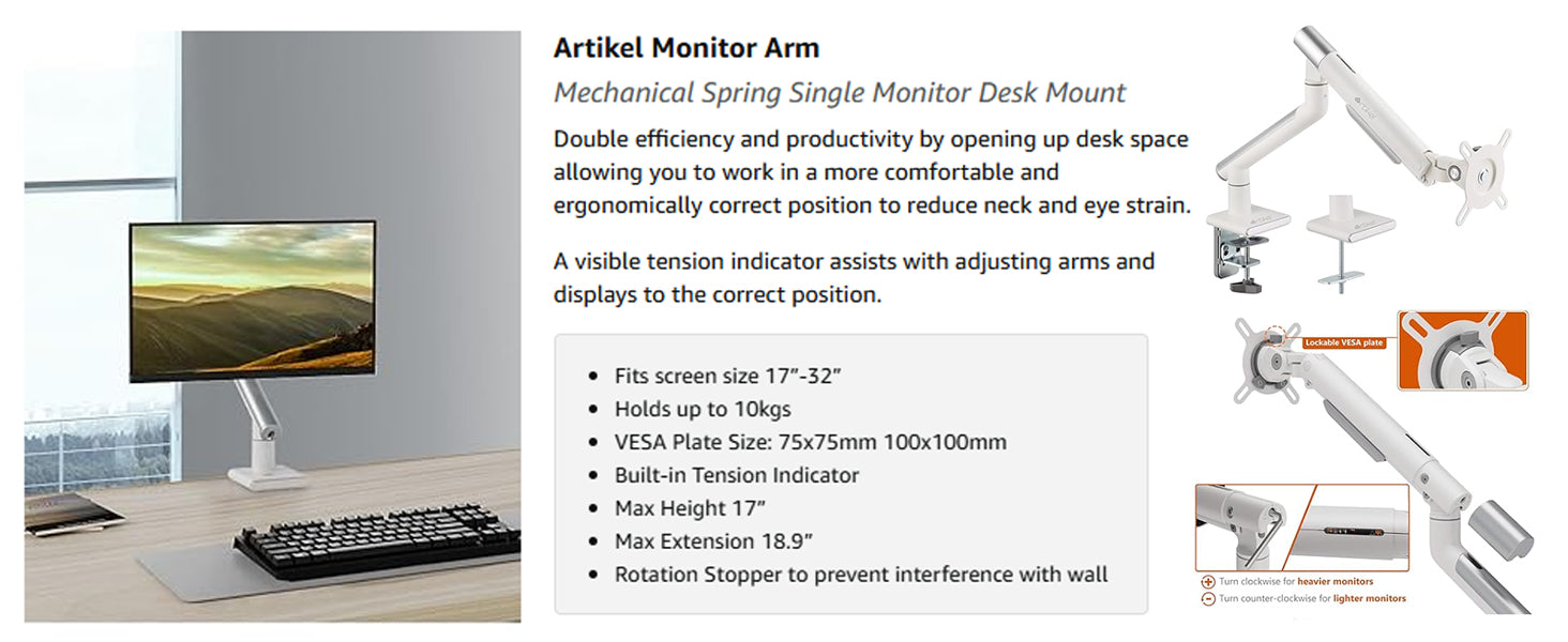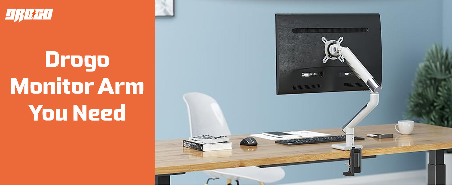 - Free Up Your Desk Space: Drogo Artikel Heavy duty monitor arm has an integral cable management feature, helping to hold wires. The single monitor desk mount releases desk space while creating a more comfortable work environment. More desk space, better workflow!