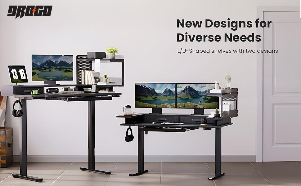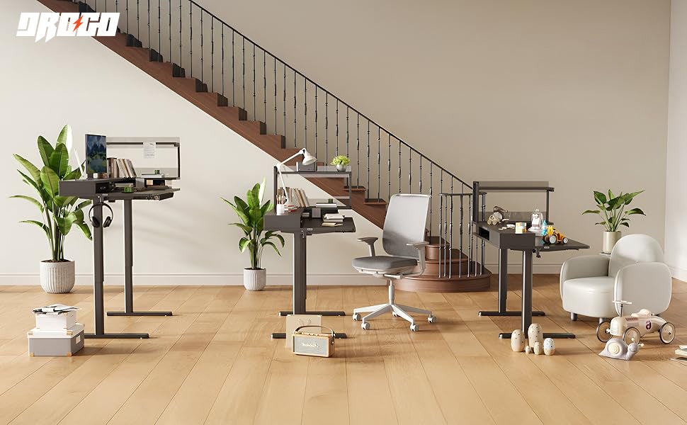 - Storage Desk: Artikel height adjustable desk comes with a storage drawer with a keyboard tray and two shelves is a versatile and practical piece of furniture, perfect for optimizing space in an office, study, or workspace. The design typically includes a sturdy drawer that provides secure storage for items such as documents, stationery, or personal belongings. Below the drawer, a pull-out keyboard tray offers an ergonomic solution for comfortable typing, ensuring a clutter-free desktop when not in use. The two shelves, positioned beneath the tray or alongside the drawer, add extra functionality, providing ample room for organizing books, electronics, or decorative items.