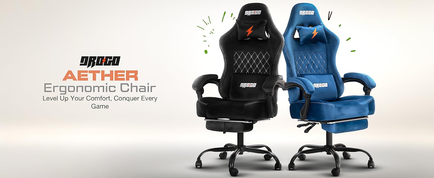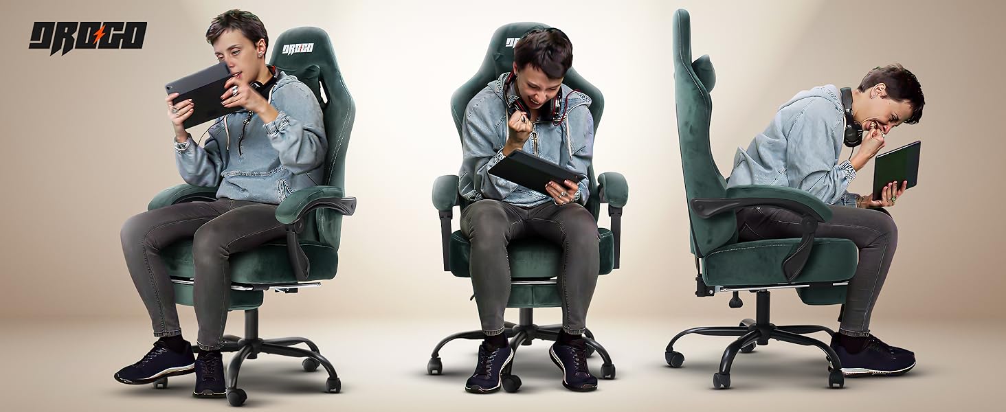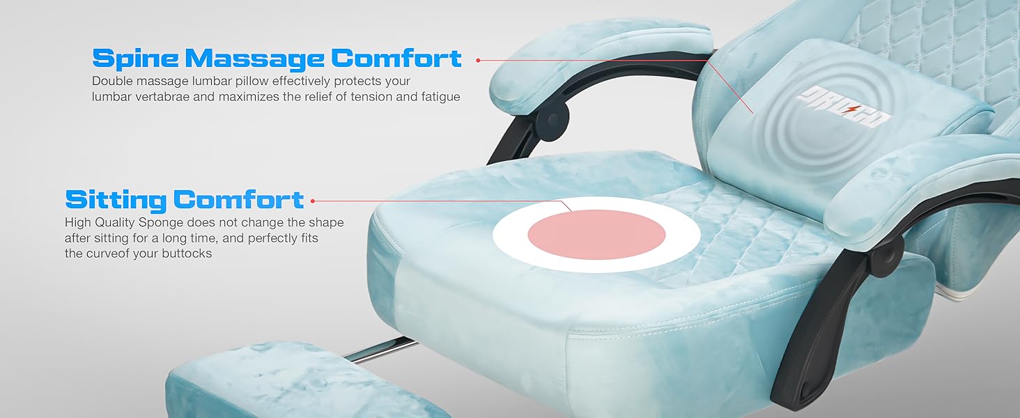 - Premium Comfort with Ergonomic Design: This ergonomic chair is tailored for comfort with plush suede fabric and includes adjustable features like height, recline, and a retractable footrest, ensuring optimal support during long gaming or work sessions.