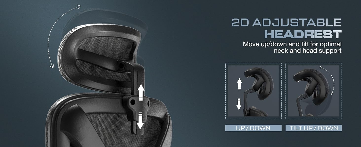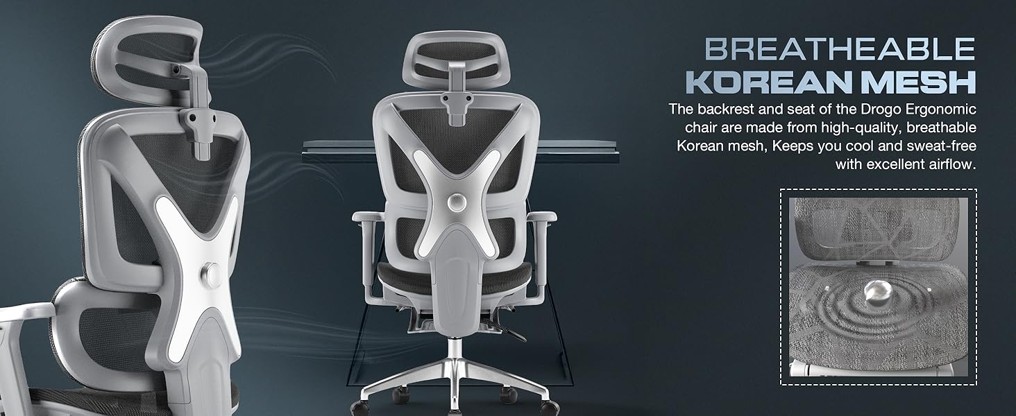 - Ergonomic Design with 2D Adjustable Headrest & 3D Armrests: The Drogo ergonomic office chair offers a 2D adjustable headrest with multi-dimensional movement, including up/down and flip adjustments, ensuring optimal neck support. The 3D armrests provide upper-lower height adjustment, front-rear positioning, and 360° rotation, making it an ideal gaming chair and chair for office work with customized comfort.