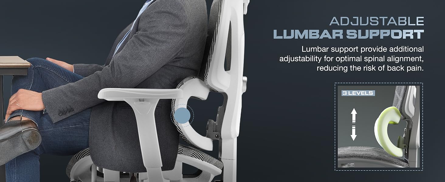 - 3-Level Adjustable Lumbar Support for Ultimate Comfort: Designed with an innovative XY integrated lumbar support system, this ergonomic office chair delivers X strong support for stability and Y flexible support for adaptability. The three adjustable height levels ensure proper spinal alignment, reducing back strain, making it an excellent choice for long work hours or gaming sessions.