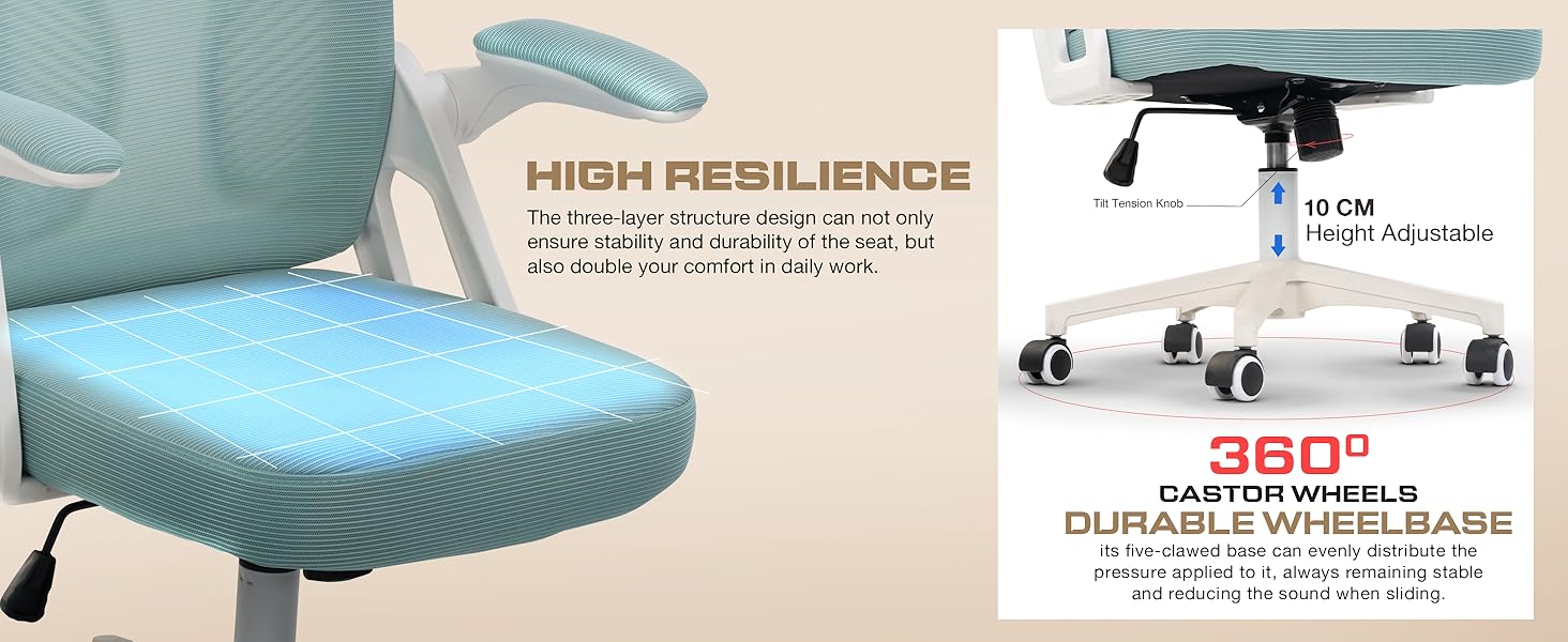 - Large and Wider Seat with Enhanced Comfort: The seat is generously sized and incorporates a wider design to accommodate various body types comfortably. Coupled with a high-resilience foam padding, the chair offers a plush seating experience that does not compromise on support, making it ideal for both short bursts and long periods of work.