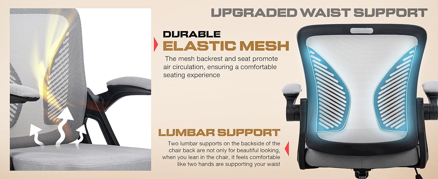 - Breathable Mesh Material: The chair's backrest and seat are covered with a high-quality breathable mesh fabric that promotes air circulation, keeping you cool and comfortable throughout the day. This material is not only durable but also provides a gentle flex, which adapts to your movements.