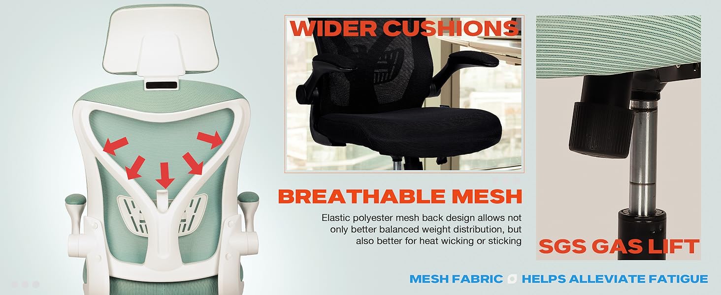 Ergonomic Office Chair: Office chair with lumbar support, and high-back office chairs are designed to improve the health of the modern spine. The mesh desk chair features a unique lumbar support design that provides the same support for your waist as lifting your hands, which can relieve the pressure on your waist from long hours of work and protect the health of your lumbar spine. Our comfortable computer chair fits your spine perfectly and relieves back pain.