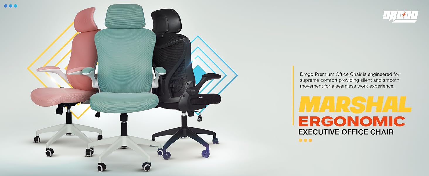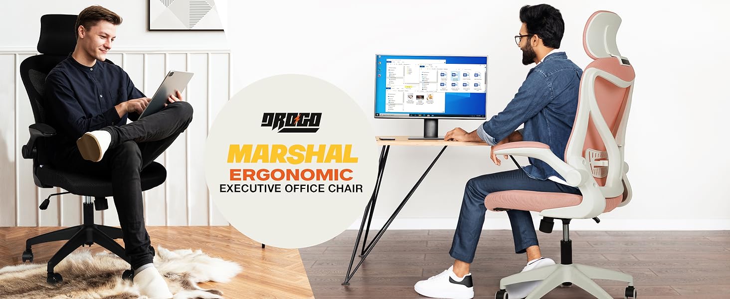 Drogo Marshal Pro Premium Ergonomic Office Chair for Work from Home, Flip-up Armrest