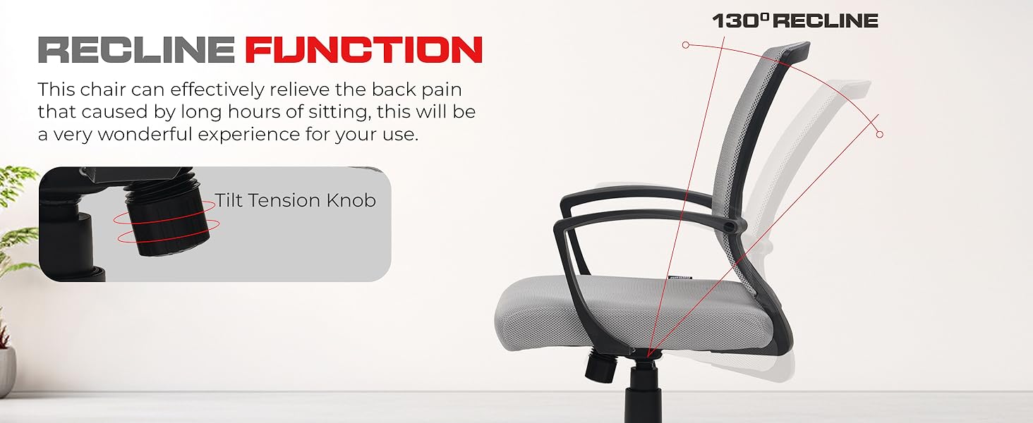 - Rocking Function with Tension Control: The chair incorporates a rocking function that allows you to lean back comfortably with the option to adjust the resistance using the tilt tension knob. This feature is perfect for taking short breaks between tasks, promoting better circulation and reducing physical stress.