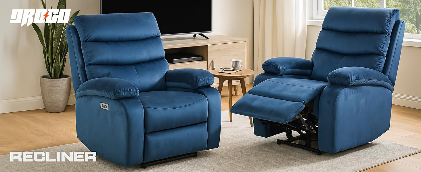 - OVERSIZED ELECTRIC RECLINER SOFA: Transform your relaxation experience with the Drogo Evo Lounge oversized motorised recliner sofa. Designed to provide the perfect balance of style and comfort, this single sofa chair effortlessly adjusts to your ideal position, offering the ultimate in home luxury.