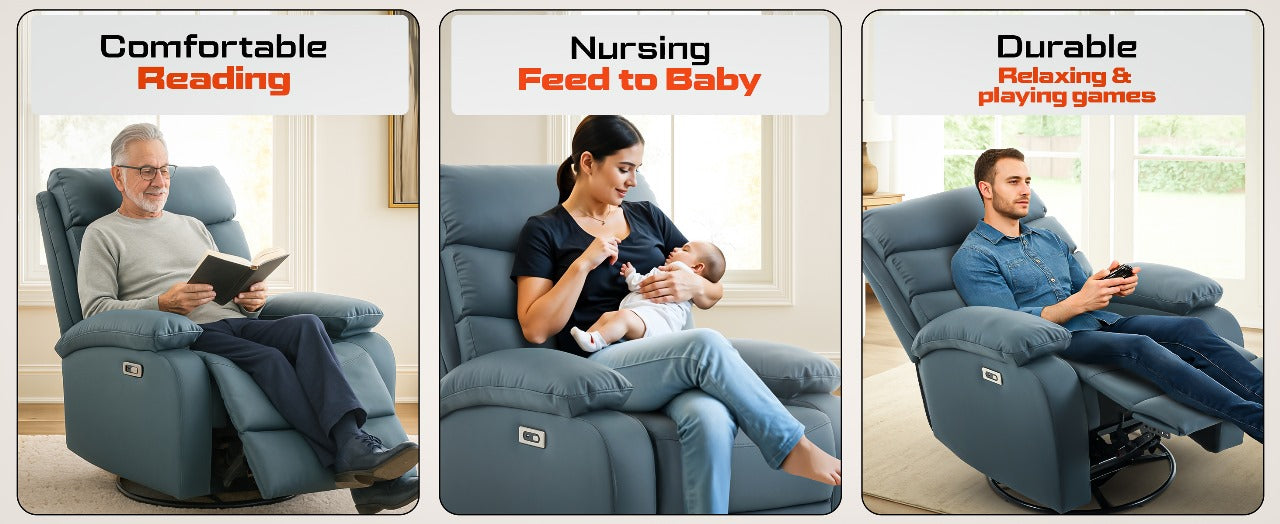 - 270-DEGREE REVOLVING RECLINER SOFA – Effortlessly adjust the seating position with the 270-degree revolving feature, allowing for versatile and customized comfort. Ideal as a reclining chair for home entertainment and leisure.