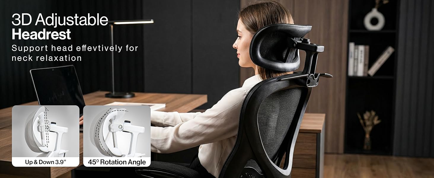 - 3D Adjustable Headrest: Equipped with a 3D headrest, the Drogo office chair allows vertical and angle adjustments for optimal neck support. Whether used as an ergonomic office chair or a chair for study, this feature promotes better posture during long hours of sitting or gaming.