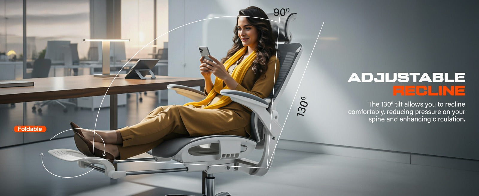 - 130 DEGREE RECLINE FUNCTION: Adjustable recline from 90 to130 degree offers the ideal posture for breaks or work, a reliable computer chair choice.
