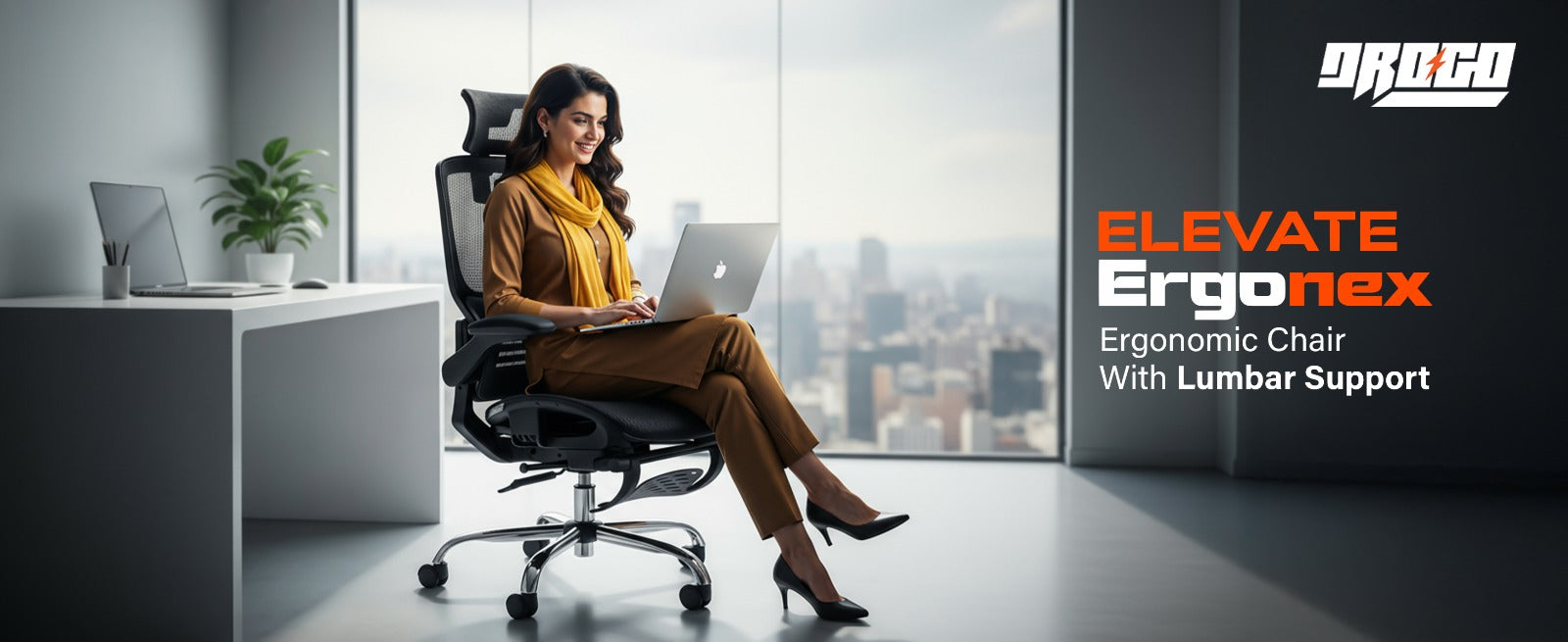 Drogo Ergonex Ergonomic Office Chair For Work From Home With Breathable Mesh