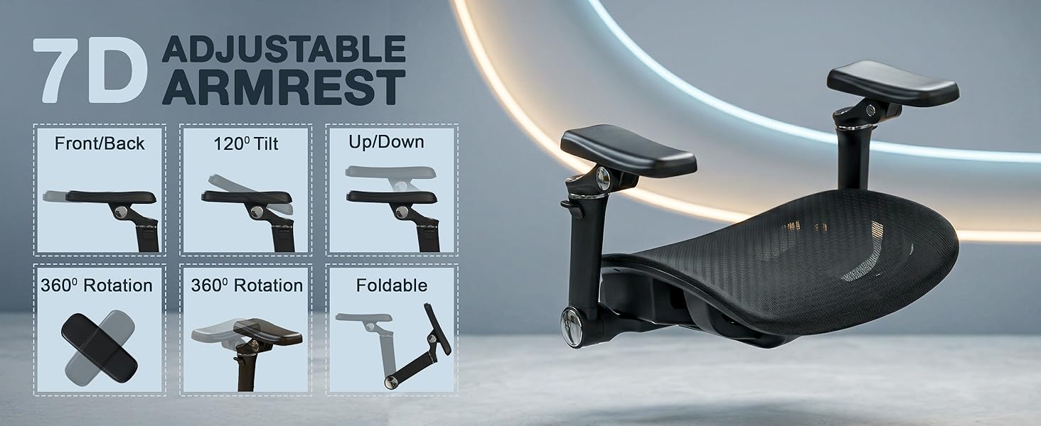 - ππ π πππππππ & π ππππ ππππππππππ ππππππππ: Designed for long work hours, this ergonomic office chair features advanced 7D foldable armrests with front/back movement, up/down height adjustment, 120Β° tilt, and smooth 360Β° rotation. Whether used as office chairs for work, a gaming chair, or a chair for home use, the armrests adapt perfectly to desks, keyboards, and relaxed postures, making it ideal for chairs for office work and study setups.