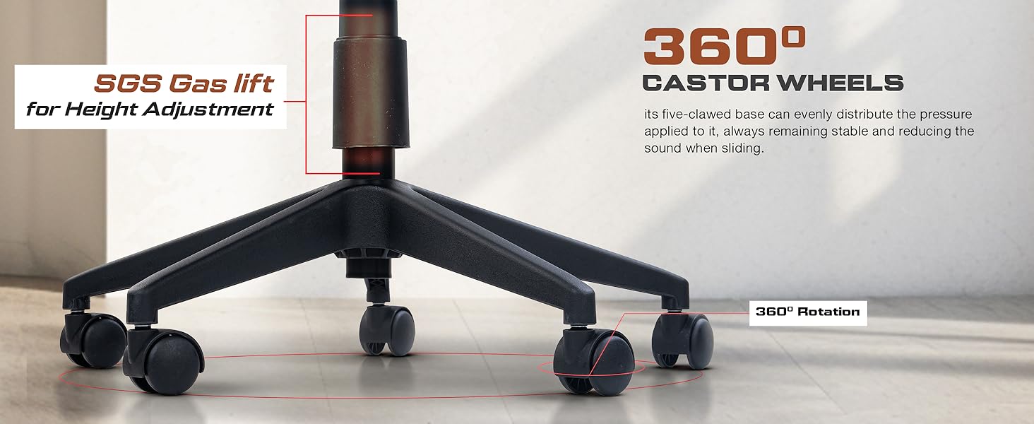 - ?Silent Mobility with Durable Wheels?: Move around your workspace silently and effortlessly with the high-quality PU caster wheels of our Lumina chair. These wheels ensure smooth mobility across different floor types without causing scratches or noise, enhancing your ability to multitask in a dynamic office environment.