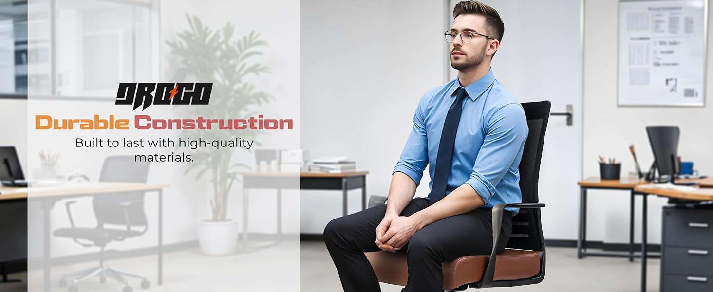- Ergonomic Design for Spine Support: Experience unparalleled comfort with the Drogo Ergonomic Chair, designed to embrace the natural curve of your spine. The ergonomic design ensures long-lasting support and reduces back strain, making it ideal for extended hours of work or study. The breathable mesh back promotes air circulation, keeping you cool.