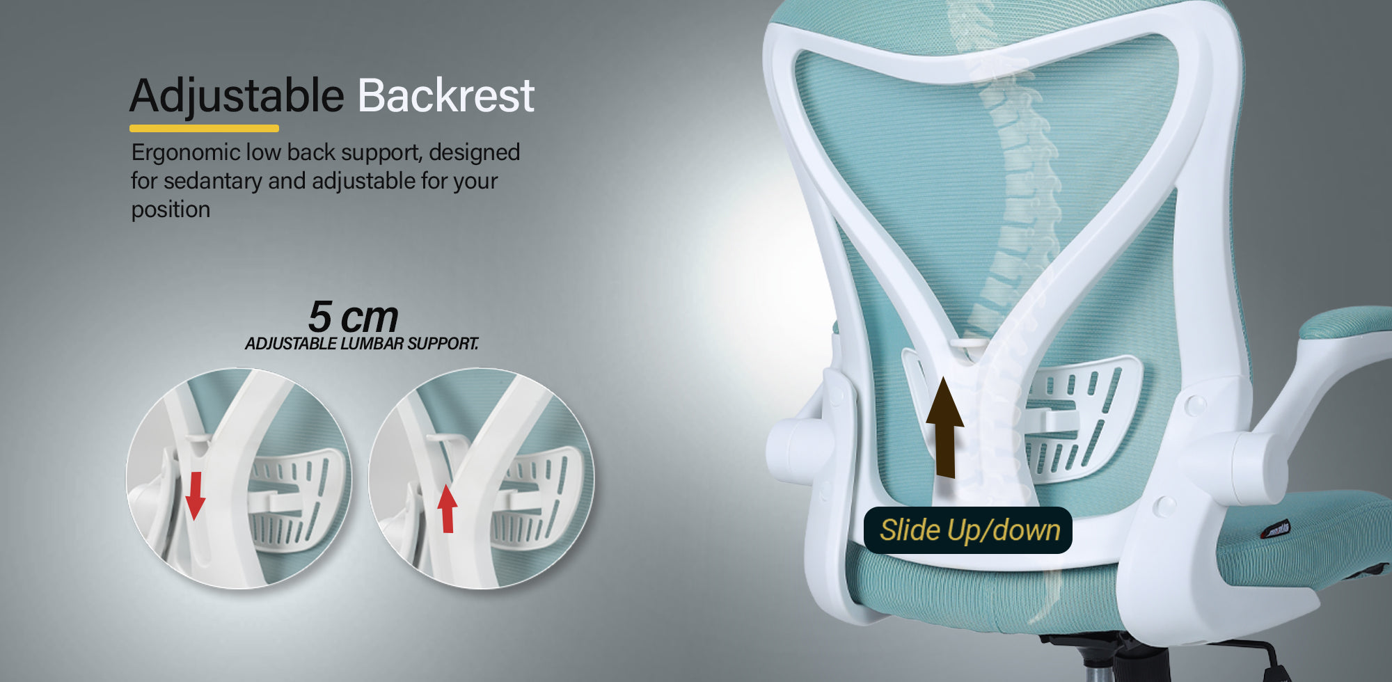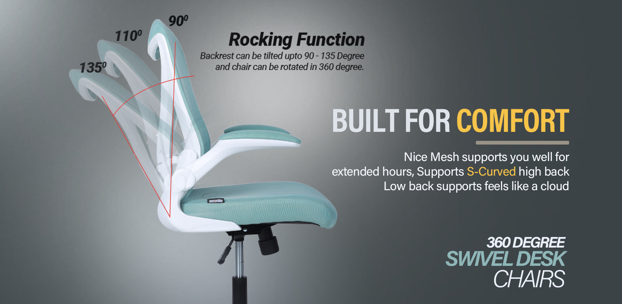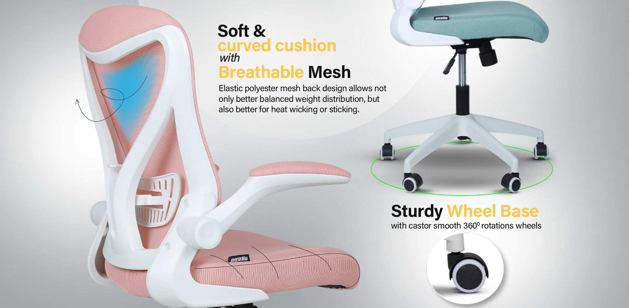 Multiple Adjustment: This ergonomic office chair height can be adjusted according to your needs, allowing you to find the most comfortable sitting position. The maximum tilt of the office chair is 110 degrees. It comes with a 5cm adjustable lumbar support. This home office chair comes with a 90-degree flip armrest which can be used as a convenience and it is a space saver that is easy to be pushed under your desk. and rolling wheels can swivel 360.