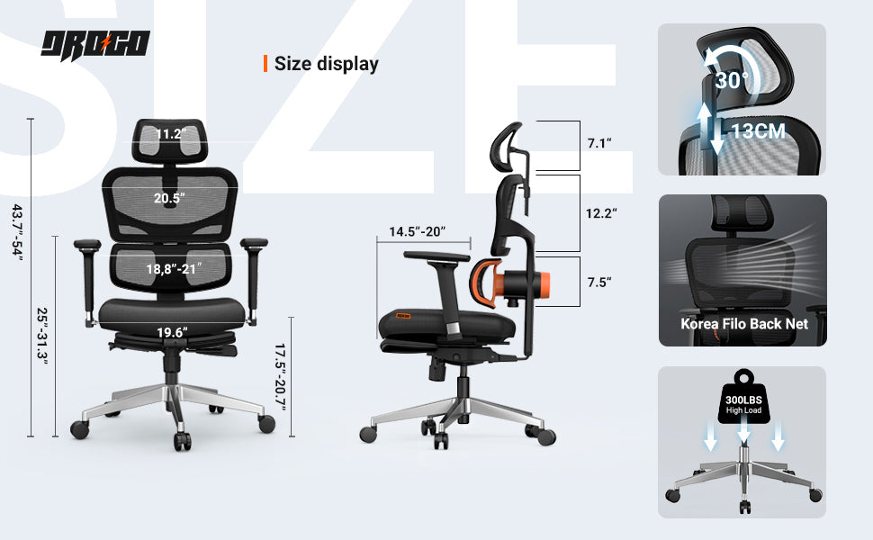 - Multifunctional Adjustment: The back of the drogo ergonomic office chair for work from home has three height options, and it can be tilted and locked from 96 to 126 degree. The angle and height of the headrest are adjustable. The seat can be lifted up and down, moved back and forth, and also equipped with 4D adjustable armrests. You can find the most comfortable support position and strength for your body, whether you are working, playing games, or resting.