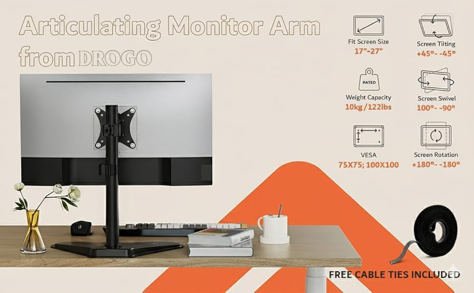 - Free Up Your Desk Mount Space: Artikel Heavy duty monitor arm has an integral cable management feature, helping to hold wires. The single monitor table mount releases desk space while creating a more comfortable work environment. More desk space, better workflow!