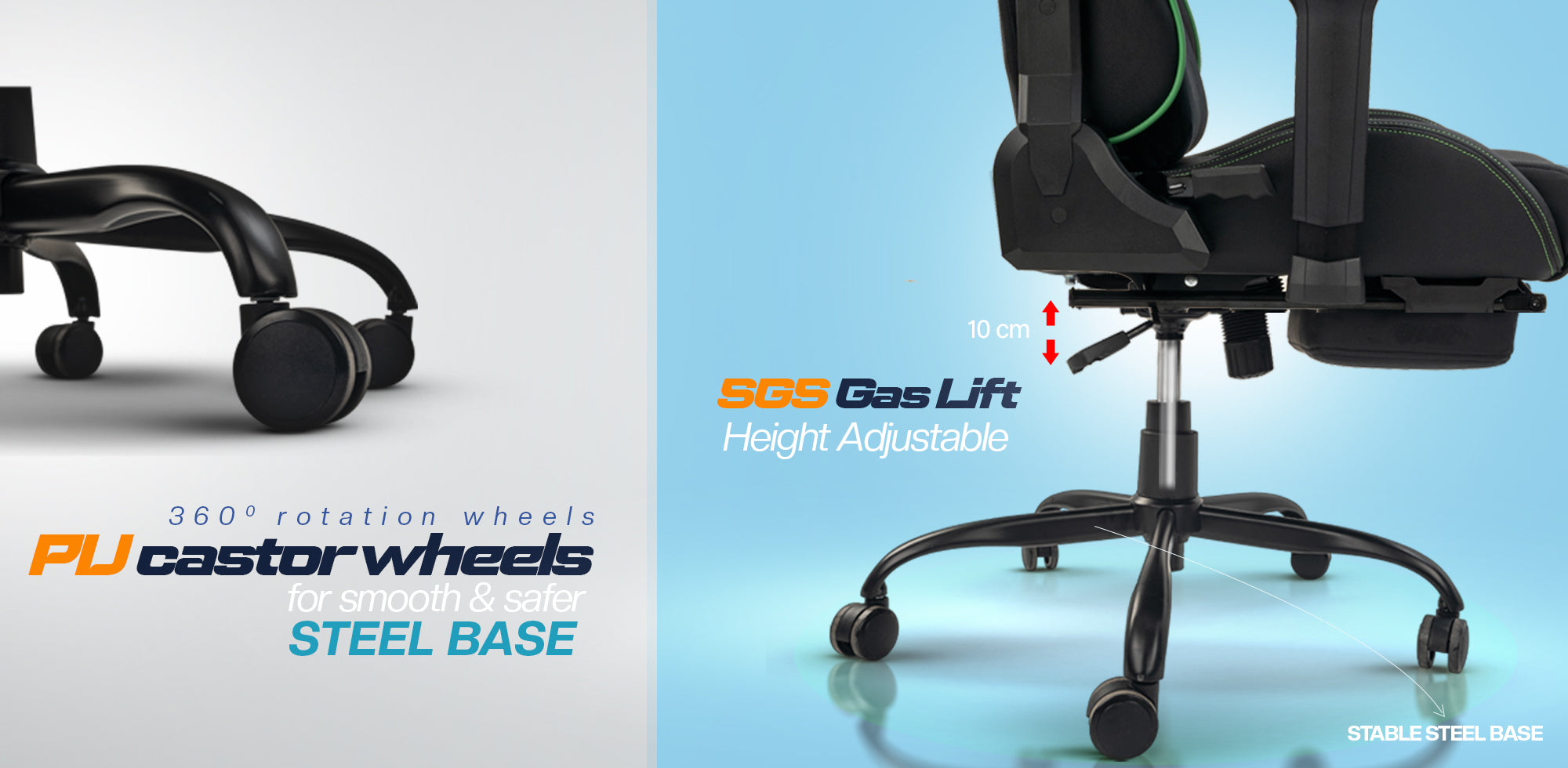 Sturdy & Strong Construction- Strong integrated metal frame and 5-point heavy duty anti-rollover metal wheelbase makes the chair Extremely stable .Upgraded PU casters with 2000 miles rolling tests roll quite smoothly and noiseless and protect floor well. The thickened explosion-proof chassis and tilt mechanism control can adjust the chair angle by 90 To 180 degree at any angle, Safety lock design to prevent overturning.