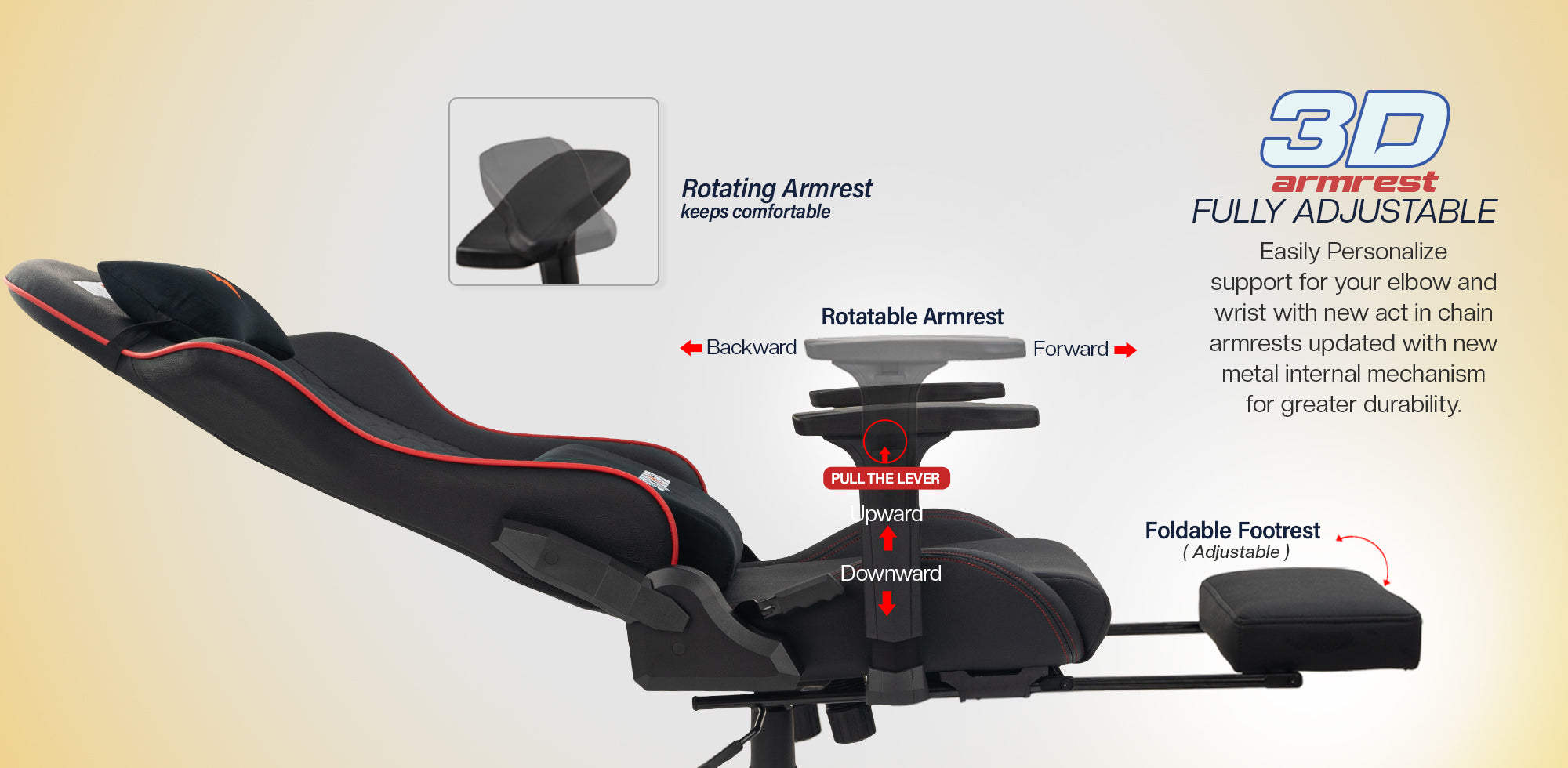 Multiple Adjustments- Gaming chair with retractable footrest, a 360 degree swivel - 10cm height-adjustable mechanism - back angle and recline/rock locking system to lock the back at any angle up to 180 degree - wider armrests adjustable to 3 Dimensions (up / down, forward / backward, left / right). anyone can comfortably use our computer game chair. sit back and work, play or relax.